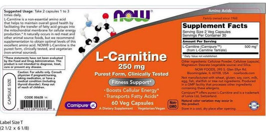 NOW L-Carnitine 250 mg Tartrate-L-Carnipure, 60 Capsules