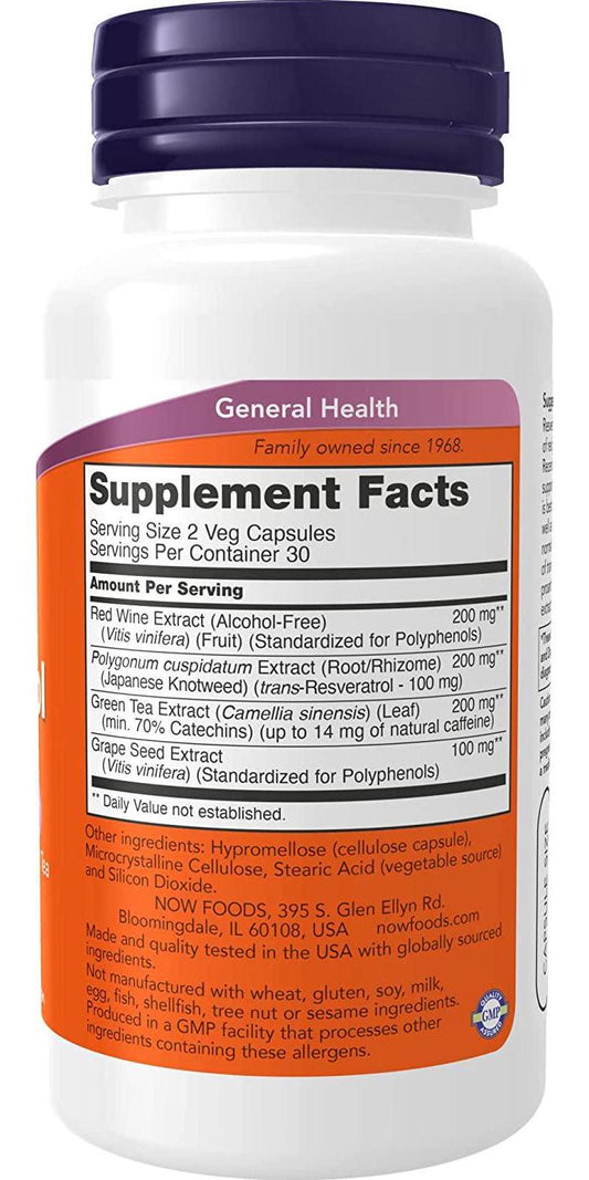 NOW Natural Resveratrol 200mg, 120 Veg Capsules