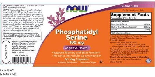 NOW Phosphatidyl Serine 100mg, 60 Veg Capsules
