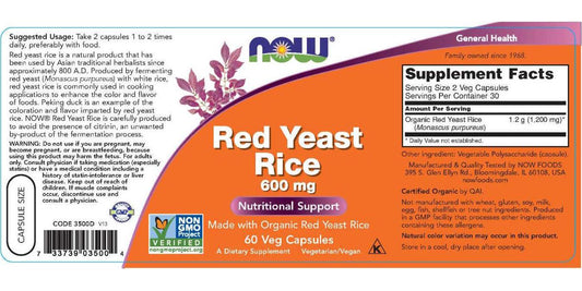 NOW Red Yeast Rice 600mg, 60 Veg Capsules