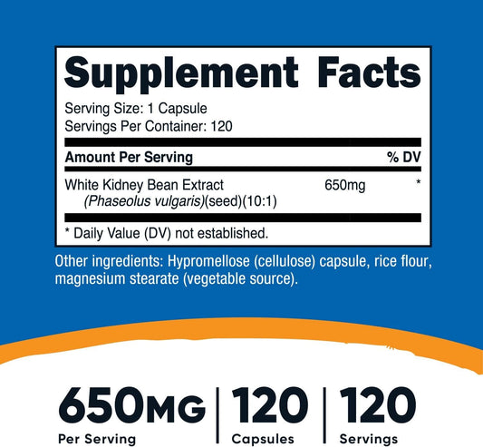 Nutricost White Kidney Beans Capsules 650mg 120 Capsules - Veggie Caps, Gluten Free and Non-GMO