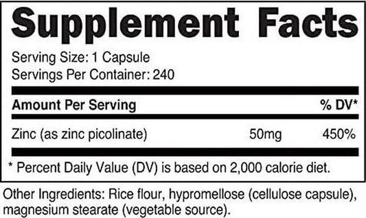 Nutricost Zinc Picolinate 50Mg, 240 Veggie Capsules - Gluten Free And Non-Gmo