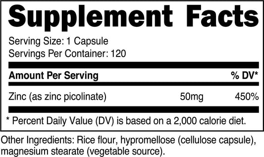 Nutricost Zinc Picolinate 50mg, 120 Veggie Capsules - Gluten Free and Non-GMO