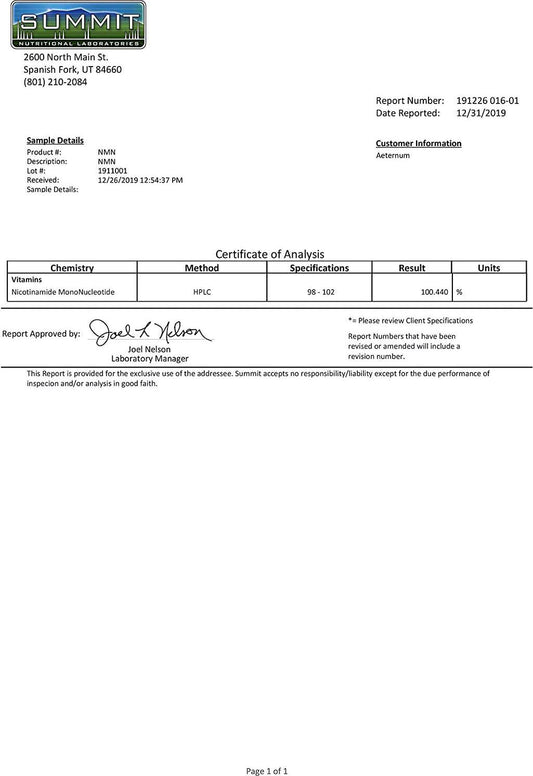 Nicotinamide Mononucleotide NMN Powder >99% CERTIFIED Purity (100g / 100 grams)
