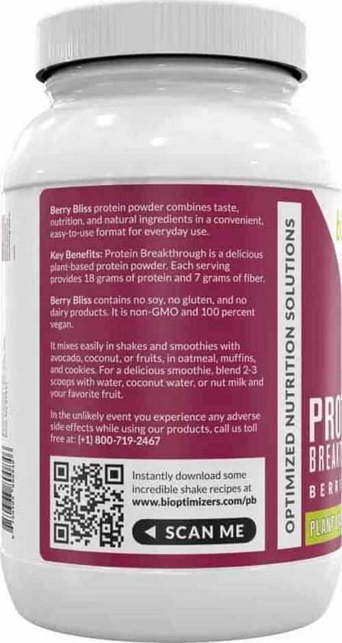 Protein Breakthrough - Plant-Based Protein Blend (from Pea, Hemp, Pumpkin Seed) - Berry Flavor (907g) - Vegan, Low-carb, Low-glycemic, Soy-Free, Gluten-Free