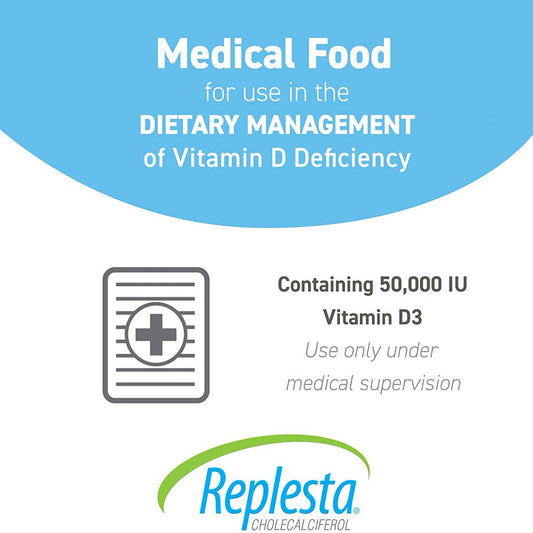 Replesta 50,000 IU Vitamin D3 Cholecalciferol, for Vitamin D Deficiency, 4 Count (Pack of 1)