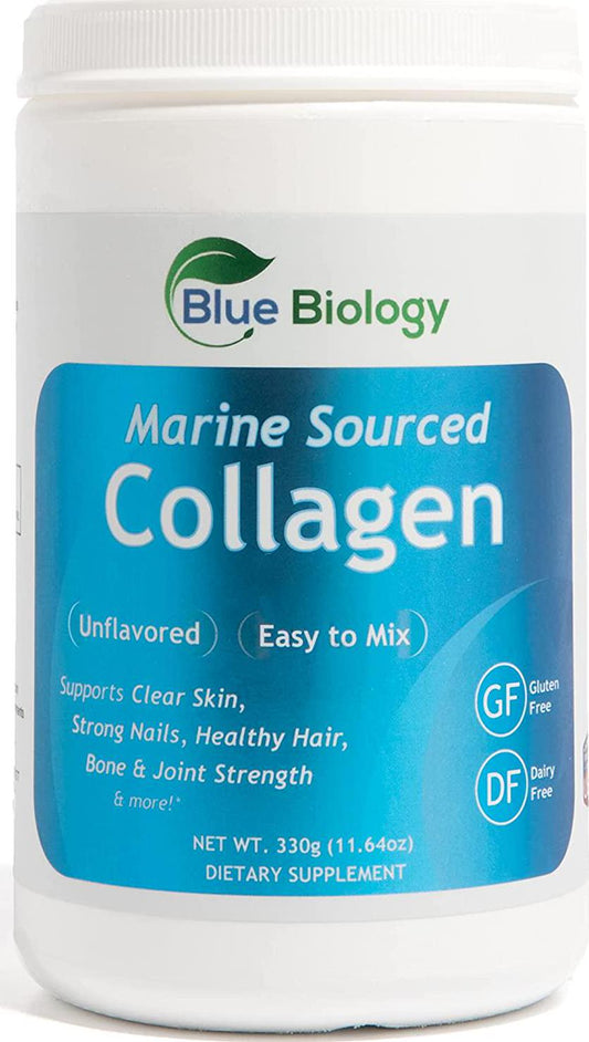 BlueBiology Collagen Powder - Hydrolyzed (Enhanced Absorption) Marine Collagen - Sports Recovery, Hair Growth - 11g Natural Protein - Skin, Nails, and Joint Health - Keto - No Flavoring