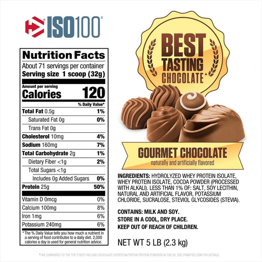 Dymatize ISO100 100% Hydrolyzed Whey Protein Isolate, Gourmet Chocolate - 2.3kg