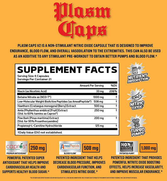 Plasm Caps Nitric Oxide Booster by Glaxon | Pre-Workout | Turbo Pumps Blood Flow Enhancer Vasodilator | 84 Capsules