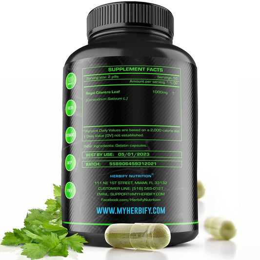 Cilantro Pills 1000mg, Cilantro Capsules (Coriandrum Sativum), Cilantro Supplement, Organic Herbal Supplement, 100 Capsules (100)