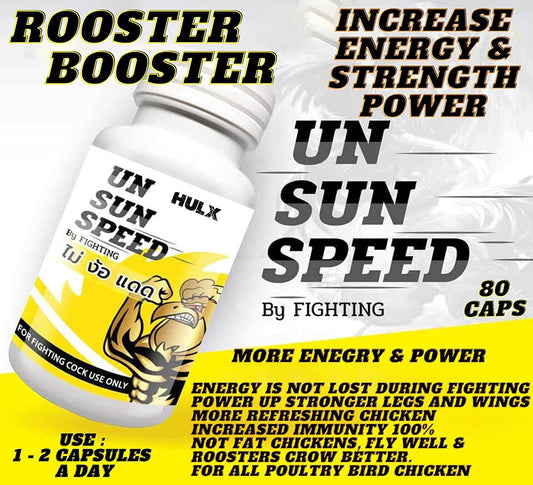 HULX 80 Capsule, Rooster Booster UN Sun Speed Vitamins Health Chicken Supplement Super Increasing Energy, Stronger and More Power Healthy Formula Feed for Bird Poultry, Cock Fighting Gamecocks Hen Food