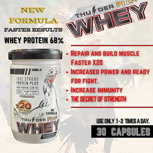 New X3 Faster 30 Capsules, WHEY Protein 68% Rooster Booster Vitamin Health Chicken Supplement for Build Body Big Muscle and Mass Gain, Power Feed Cock Fighting Gamecocks, Bird, Good Breeding, Hen Food
