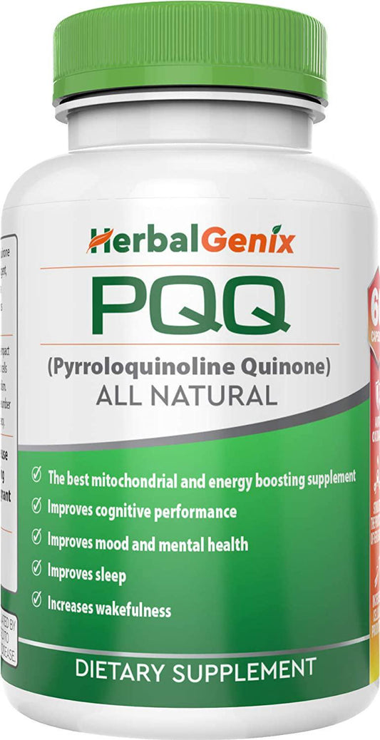 Improve Memory, Energy, Sleep, Fatigue and Immune Health with HerbalGenix PQQ (Pyrroloquinoline Quinone) Mitochondria Supplement. All Natural, Non-GMO/Gluten Free/Vegan Caps.