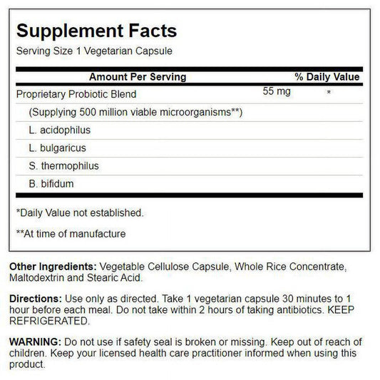 KAL Acidophilus Probiotic - 4 | for Intestinal Flora Nutritive Support | 500 Million Cfus, 4 Strains | for Men & Women | Vegetarian Capsules | 100Ct