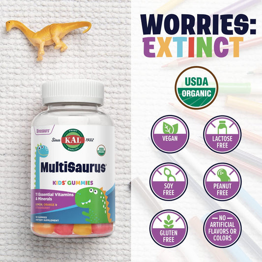 KAL MultiSaurus Kids’ Gummies | USDA Organic Multivitamin and Mineral for Children | Vegan, Gluten Free | 30 Serv, 60 Ct