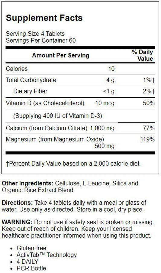 KAL Cal-Citrate plus 1000Mg | Blend of Calcium Citrate, Magnesium and Vitamin D-3 | for Healthy Bones & Teeth | No Gluten & Non-Gmo | 240 Tablets