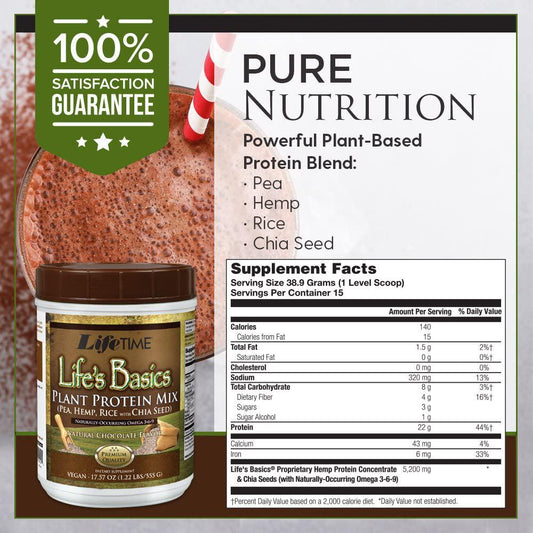Lifetime Lifes Basics Plant Based Protein Powder | Natural Chocolate, Vegan | No Gluten, Artificial Flavors, or Preservatives | 1.22lb
