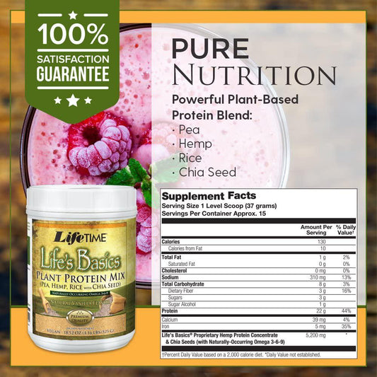 Lifetime Lifes Basics Plant Based Protein Powder | Natural Vanilla, Vegan | Gluten Free, No Artificial Sweeteners, Flavors or Preservatives | 1.22lb