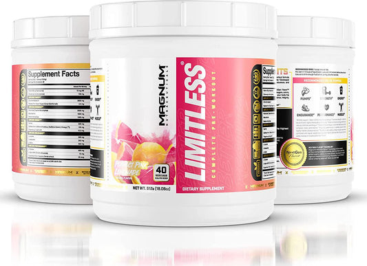Limitless Pre Workout - Perfect Pink Lemonade 40 Servings - Magnum Nutraceuticals, All in One Pre Workout Powder for Men and Women for Energy, Strength, Pumps, Endurance Focus