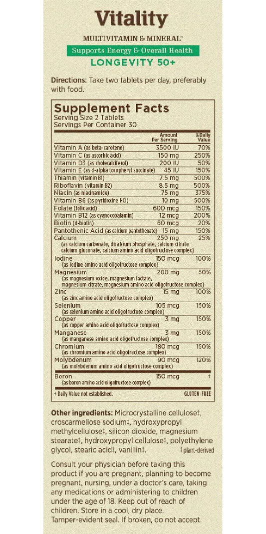 Melaleuca Multivitamin and Mineral Longevity Supplement for Men and Women 50+, Powered by Oligo (60 Tablets) - Supports Energy and Overall Health / Organically Bound for Maximum Absorption and Antioxidant Protection