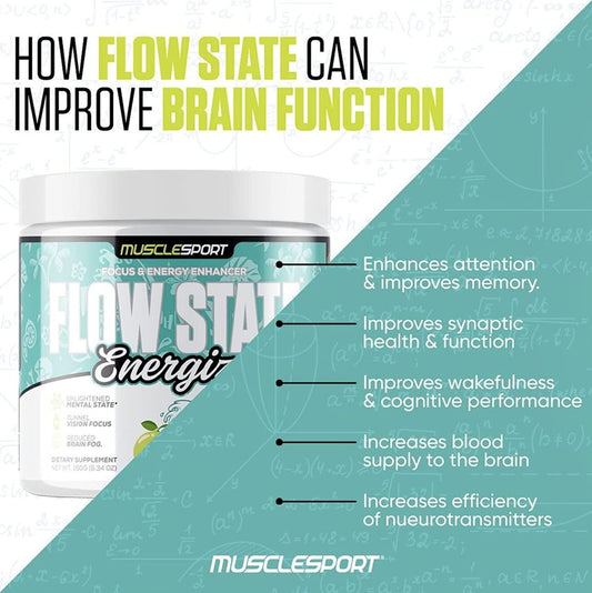 MuscleSport Flow State Energize - Energy Formula and Nootropic Brain Support - Mental Focus Supplement (Baja Splash)