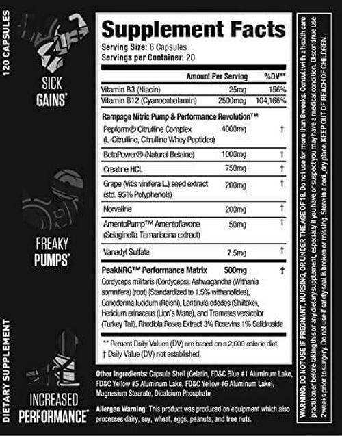Rhino Rampage Pumped - Nitric Oxide Booster - Non-Stim Preworkout Pump Supplement - 120 Capsules
