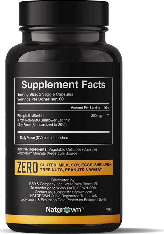 Phosphatidylserine 300 mg - Premium Brain Health Nootropic Supplement, Supports a Healthy Mind and Cognitive Function - Vegan, Gluten Free -120 Capsules