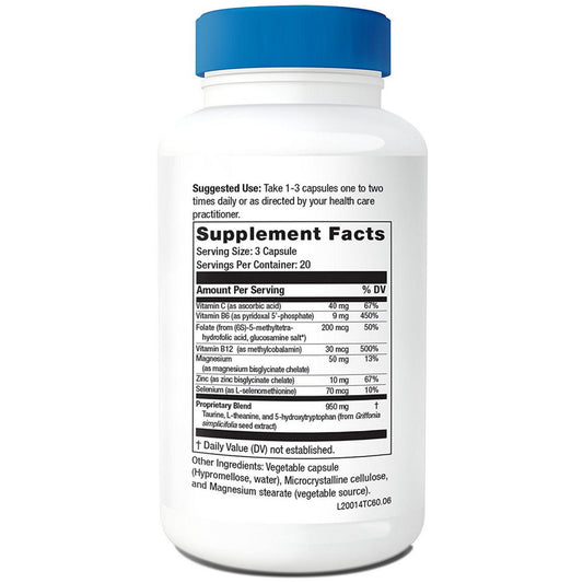 NeuroScience Serene - Mood Support with 100mg 5-HTP, Vitamin B6, Folate + Calcium - Non-Drowsy + Non-Groggy Serotonin Support Supplement (60 Capsules)