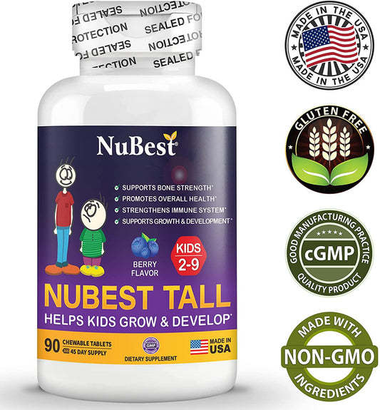 NuBest Tall Kids - Supports Healthy Growth in Kids from 2 to 9 Years Old with Multivitamins and Multi-Minerals - Berry Flavor - Helps Kids Grow - 90 Chewable Tablets