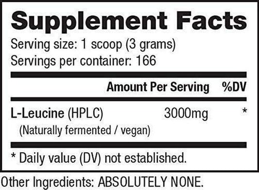 NutraBio 100% Pure L-Leucine - Muscle Recovery and Support - Naturally Fermented Free Form Amino Acid - Vegan, Non-GMO, Gluten Free - (500 Grams)