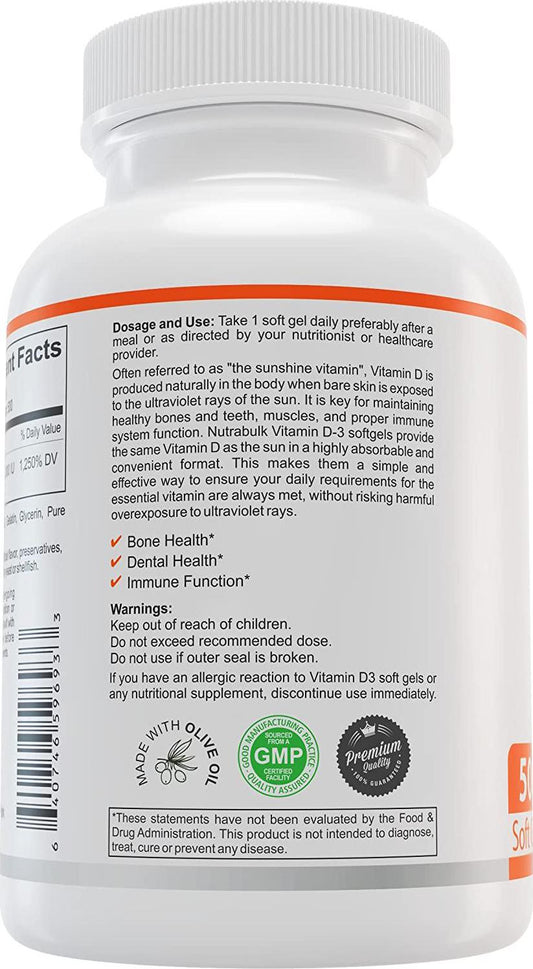 NutraBulk Vitamin D3 5,000IU Soft Gels - 500 Count