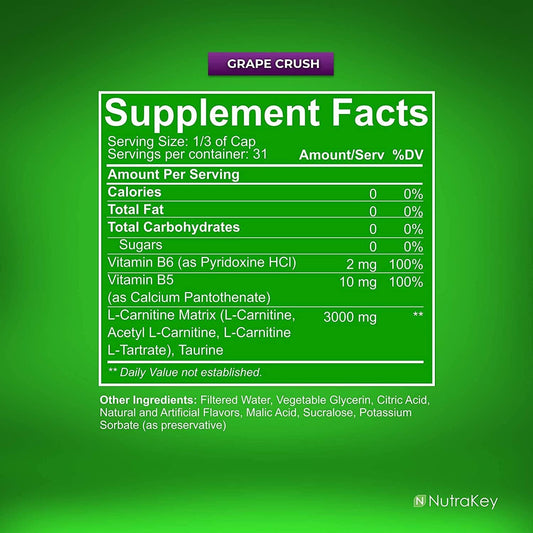 NutraKey L-Carnitine 3000mg, No Sugar, Gluten Free, Turn Into Fuel, (Grape Crush) 31 Servings