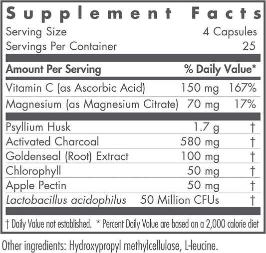 NutriCology Superior GI Cleanse - Fiber, Charcoal, Goldenseal, Probiotic -100 Vegetarian Capsules