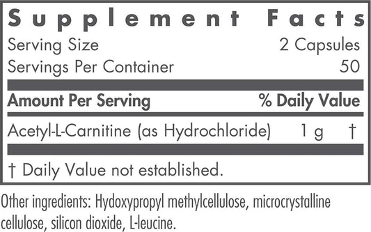 NutriCology Acetyl L-Carnitine 500mg - Metabolism and Energy Support - 100 Vegetarian Capsules