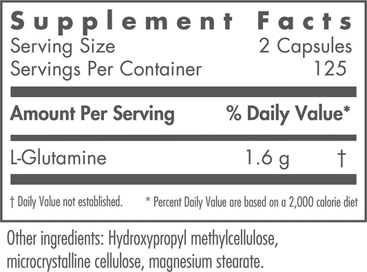 NutriCology L-Glutamine 800mg - Brain and GI Tract Fuel - Amino Acid - 250 Vegetarian Capsules