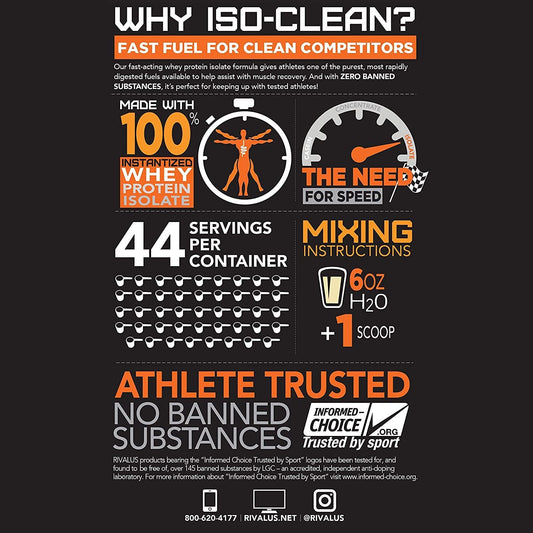 Rivalus Iso-clean Protein, Smooth Vanilla, 3 Lb - 100% Whey Isolate Protein, Fast Digesting, Zero Gluten, Zero Fat, Clean Nutritional Profile, No Banned Substances, Made In Usa