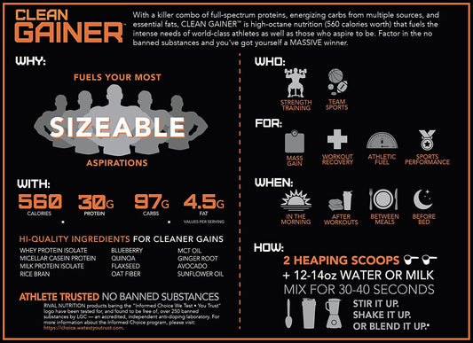 Rivalus Clean Gainer Protein Powder 12 lb, Smooth Vanilla,, Smooth Vanilla 5443 grams