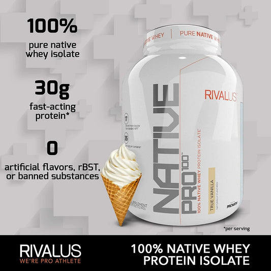 Rivalus Native Pro 100 Protein Powder Blend, Vanilla, 3.2 Pound