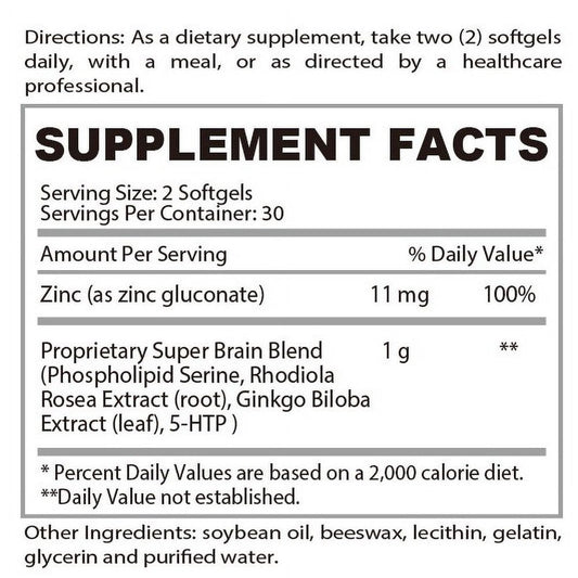 SEDDS Super Nootropic Brain Booster Supplement to Improve Memory, Boost Focus, Increase Mental Energy with Ginkgo Biloba Extract - 60 Softgel