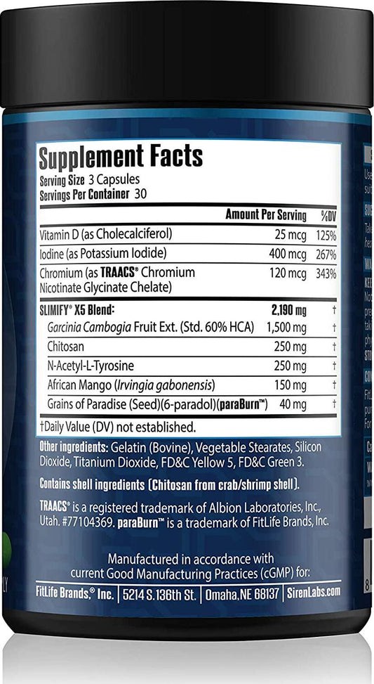 Siren Labs Slimify Advanced Fat Burner for Weight Loss - Garcinia Cambogia, African Mango, and Grains of Paradise - Boost Metabolism, Decrease Appetite, and Increase Energy - Stim Free (90 Capsules)