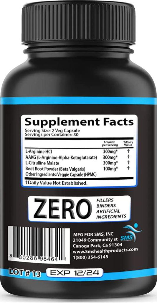 L-Arginine Capsules by SMS for Protein Building and Nitric Oxide Boosts | Beet Root Powder for Vascularity and Growth | 60 Capsules