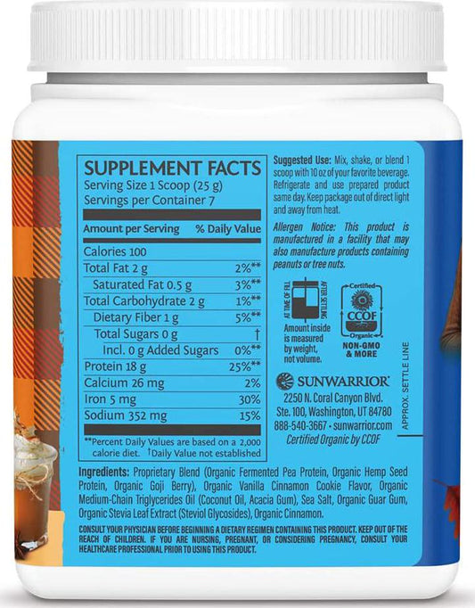 Sunwarrior Protein Classic Vanilla - 18g Protein Per Serving - Organic Plant Based and Vegan, 13.2 Ounce, 0.375 kilograms
