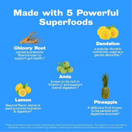 Sunwink Digestion Lemonade - Organic Superfood Powder for Gut Health and Digestion Support with Amla Powder, Dandelion Root Extract and Chicory Root - Flavored with Lemon and Pineapple Juice (40 Servings)