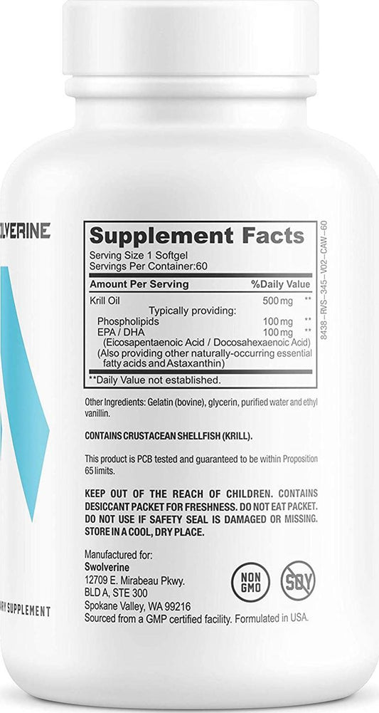 Krill Oil | 500mg of Krill Oil and Astaxanthin, Omega-3s, EPA and DHA, Fast Absorbing, Joint Relief, Heart Health (60 Servings)