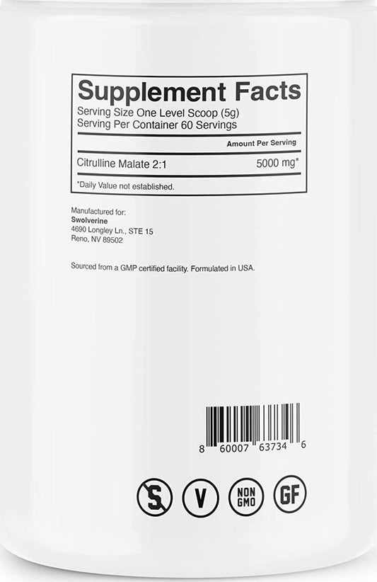 Citrulline Malate 2:1 | 2:1 Ratio of L-Citrulline and Malic Acid, Increases Strength, Enhances Muscular Endurance, Boost NO, Optimizes Recovery, 300g, 5g Per Serving, Unflavored, (60 Servings)