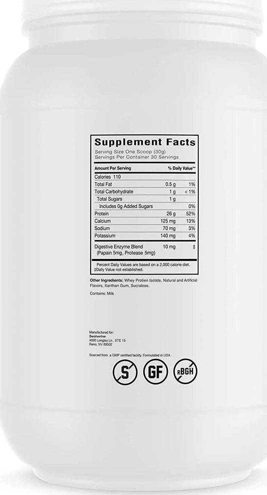 Whey Protein Isolate | 26g Protein, Grass-Fed rBGH Free, Non-GMO, Added Digestive Enzymes (30 Servings, Vanilla Milkshake)