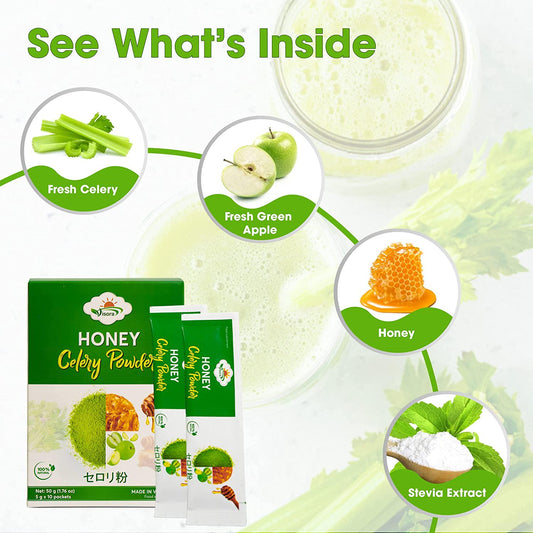 Visora Honey Celery Powder, Helps Cleanse and Detoxify, Supports Healthy Digestion, Boosts Immune Support, Antioxidant Support, Rich in Vitamin C and Minerals, Vegan (1 Box of 10 Servings)