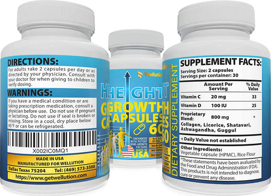 Height Growth Maximizer Supplement - Natural Height Pills to Grow Taller - Made in USA - Growth Pills with Calcium for Bone Strength - Get Taller Supplement That Increases Bone Growth - Made in USA