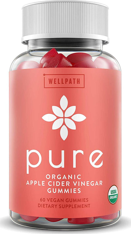 Pure ACV Apple Cider Vinegar Gummies with The Mother - USDA Organic Gummy - Vegan - Raw Apple Cider Vinegar Supplements - ACV Gummies - Detox Support - 60 Ct by WellPath