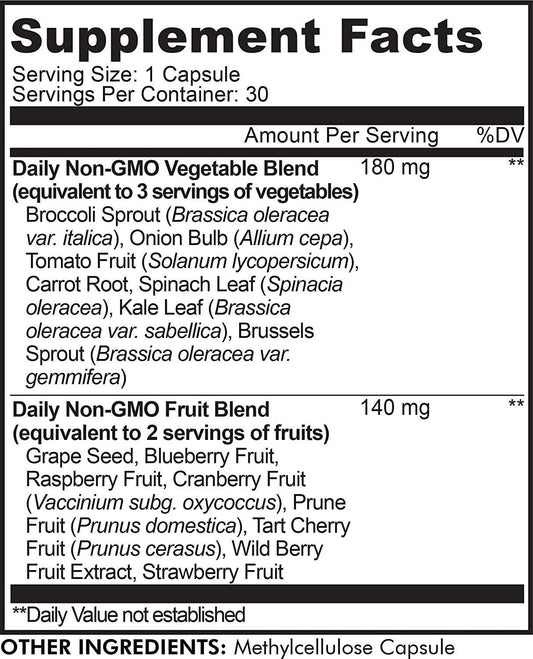 Codeage 5 Servings of Fruits and Veggies Equivalent in 1 Single Capsule, Whole Food Non-GMO, 15 Greens and Fruits All-in-One Pill, Eat Vegetables for Wellness Vegan Vitamins Supplement, 30 ct